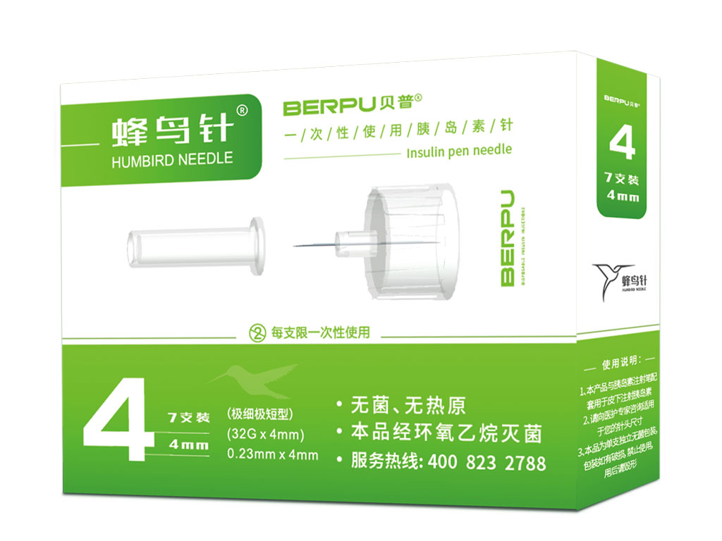 作为贝普旗下最新款的一次性使用胰岛素注射笔用针头, 贝普蜂鸟针重新定义针头的标准,提升胰岛素针头产业升级革命,开创性地将“硬针尖”“超薄壁”“微针点”“8点受力”“微痛感”“超安全” 等尖端技术融合,在保证胰岛素注射效率、较少漏液风险的同时,大幅度消除注射疼痛感,提升患者体验;各类长短针头能够直达皮下组织,保证药物稳定吸收;同时也推出了自动、手动两种安全款,有效防止交叉感染。